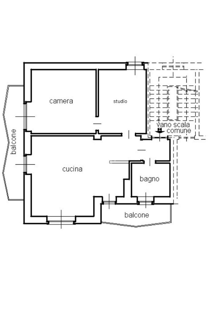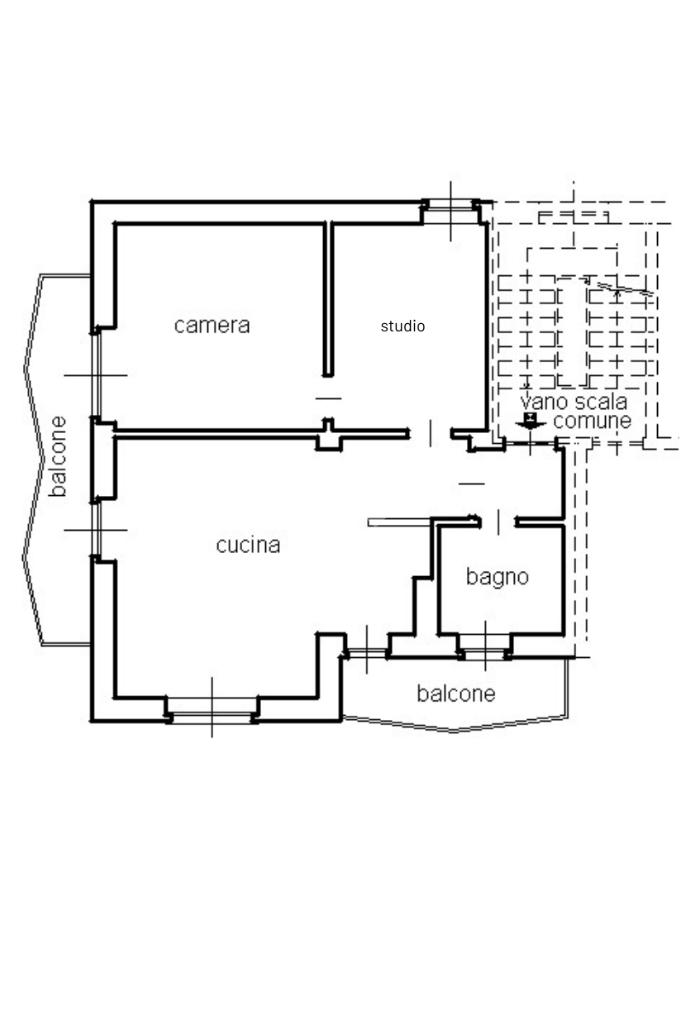 La camera da letto è di buona metratura ed è dotata di balcone, uno studio ed il servizio igienico servito di doccia completano la soluzione abitativa.